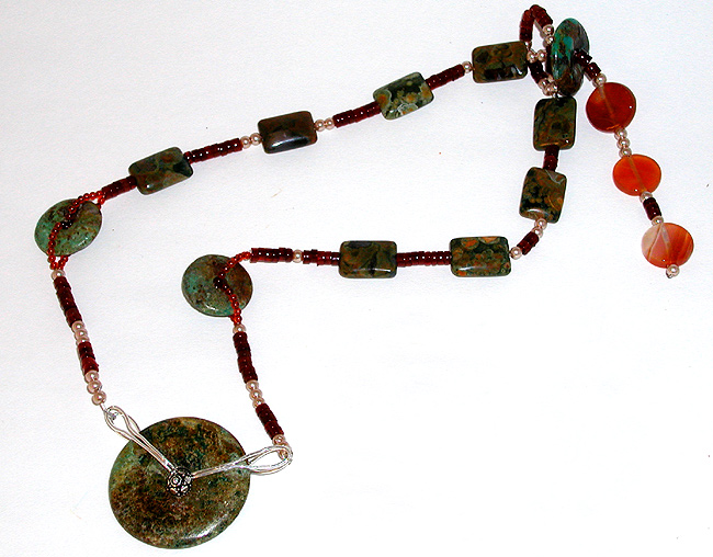 bead and about 2” of 2mm carnelian beads.